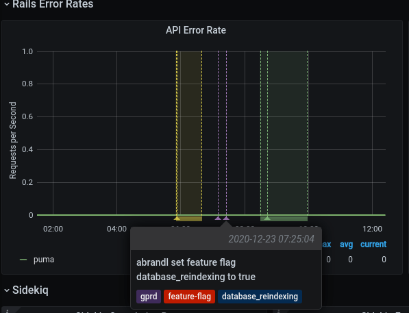 These dashboards are designed to give an insight, to everyone working in a feature category, into how their code operates at GitLab.com scale. They are grouped per stage group to show the impact of feature/code changes, deployments, and feature-flag toggles.