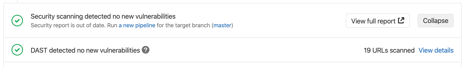 Note that a pipeline may consist of multiple jobs, including SAST and DAST scanning. If any job fails to finish for any reason, the security dashboard doesn't show DAST scanner output. For example, if the DAST job finishes but the SAST job fails, the security dashboard doesn't show DAST results. On failure, the analyzer outputs an exit code.