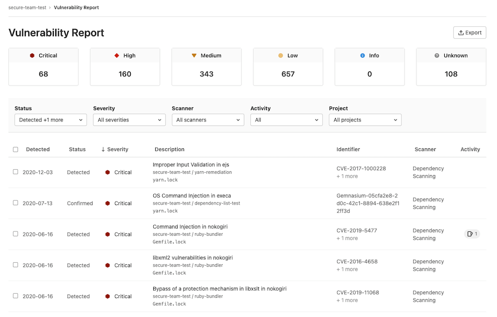- Added to the group-level Vulnerability Report in GitLab Ultimate 13.1.