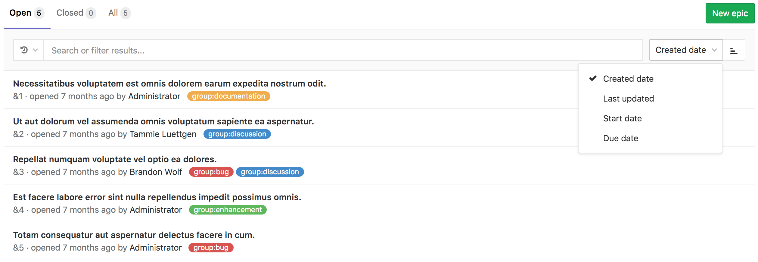 You can also sort epics list by: