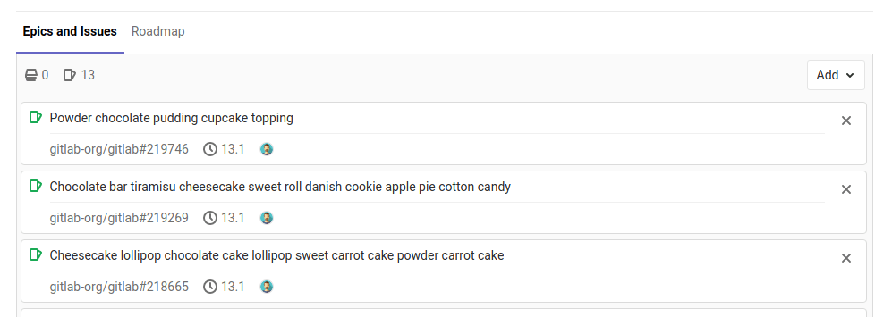 - Search for the desired issue by entering part of the epic's title, then selecting the desired match (introduced in GitLab 12.5).