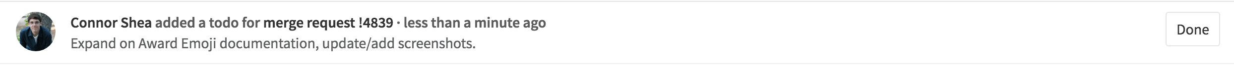 If no action is needed, you can manually mark the to-do item as done by clicking its corresponding Done button to have GitLab remove the item from your To-Do List.